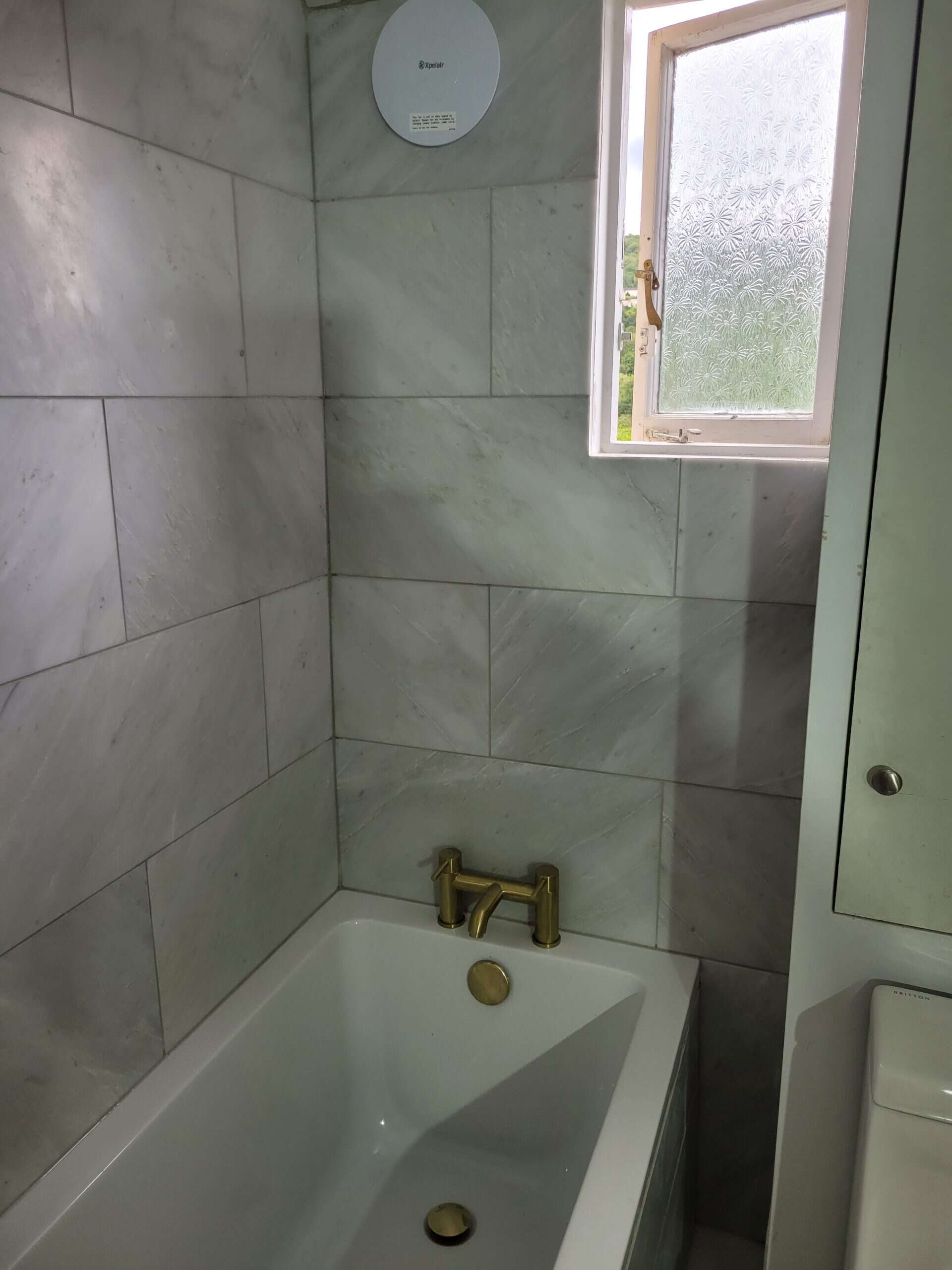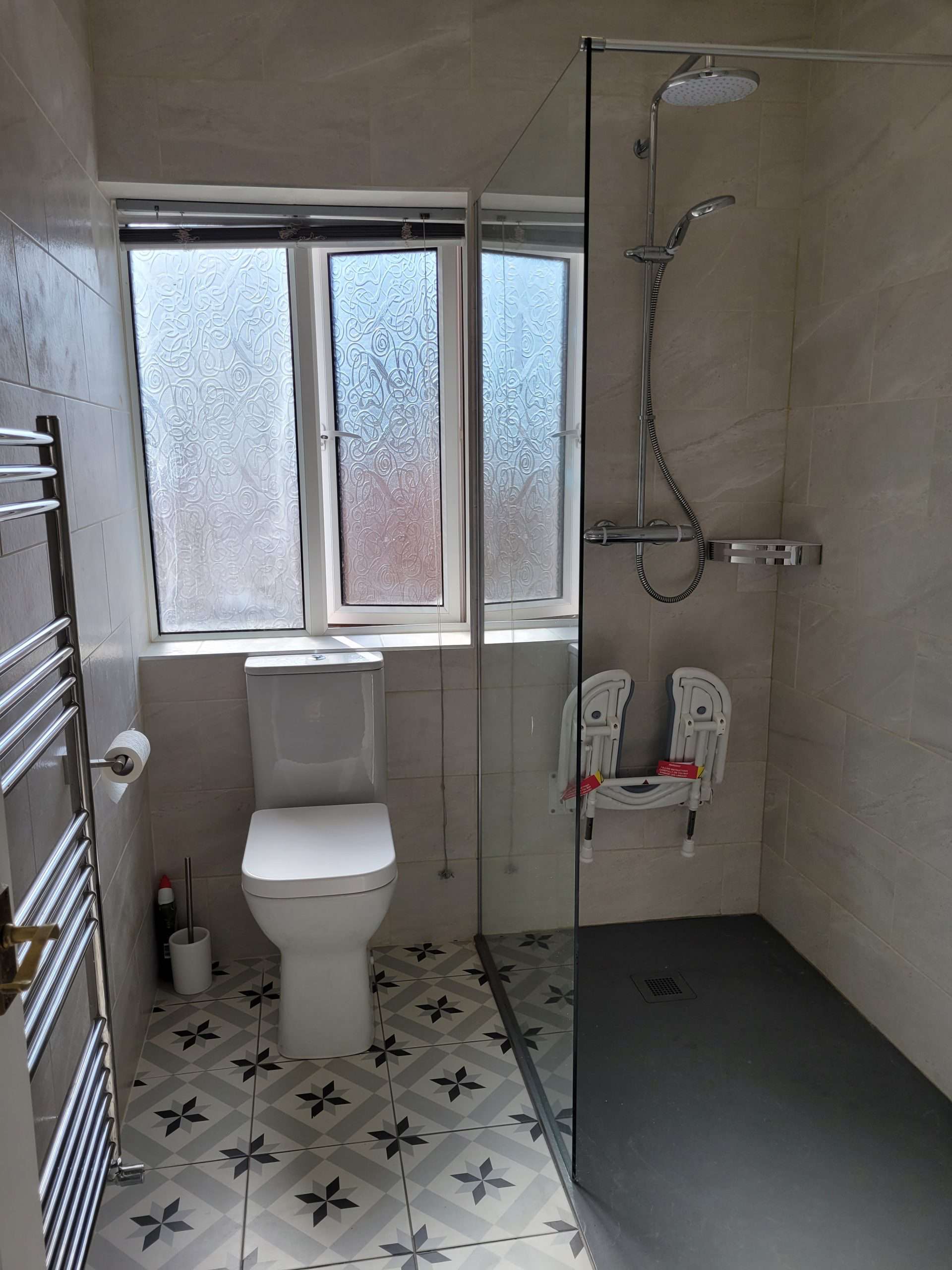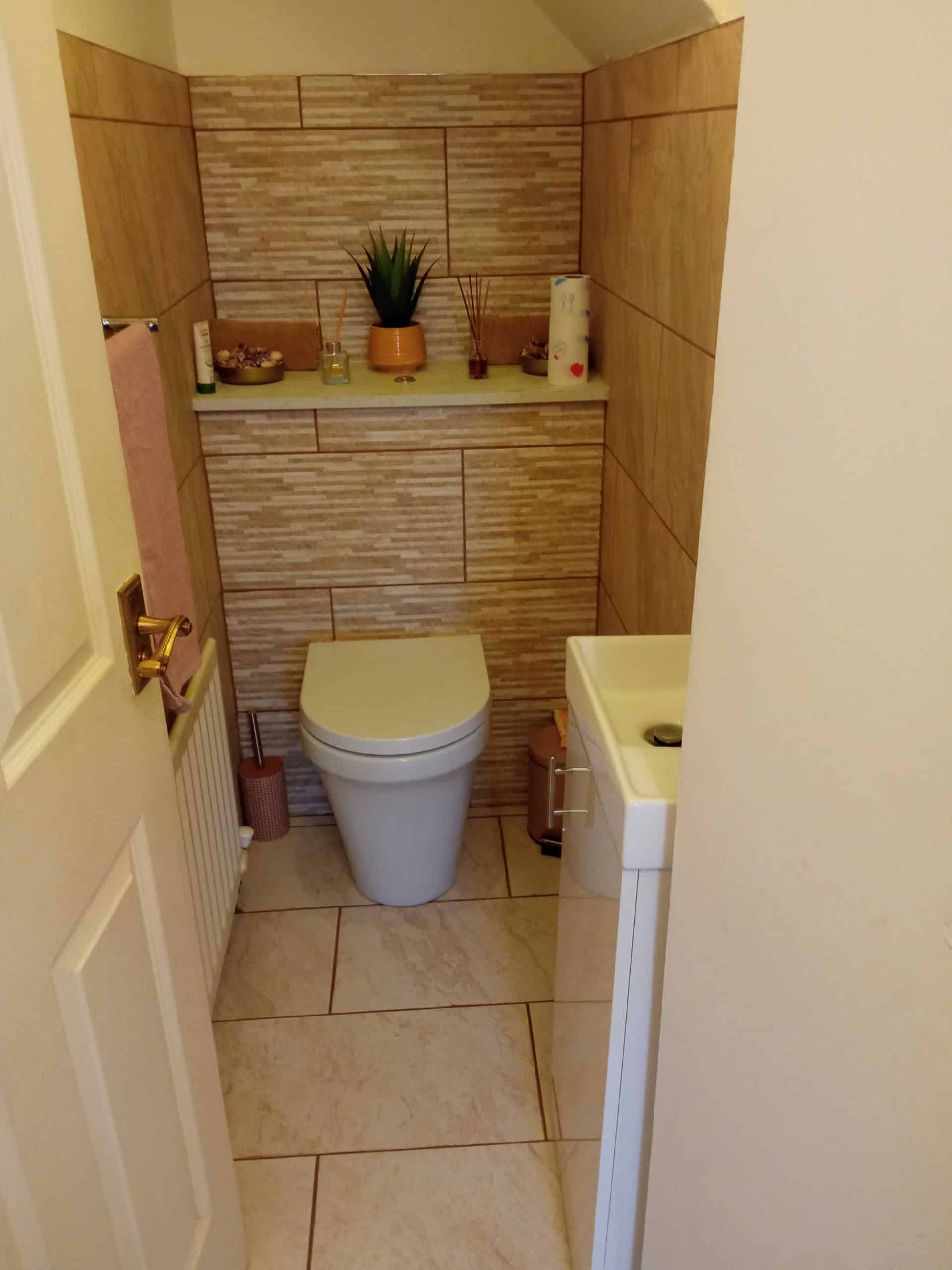 I think that the customer made some great choices with their brassware (taps, towel radiator, toilet holder) and the overall effect is to lighten up and completely change the look of a fairly small bathroom.