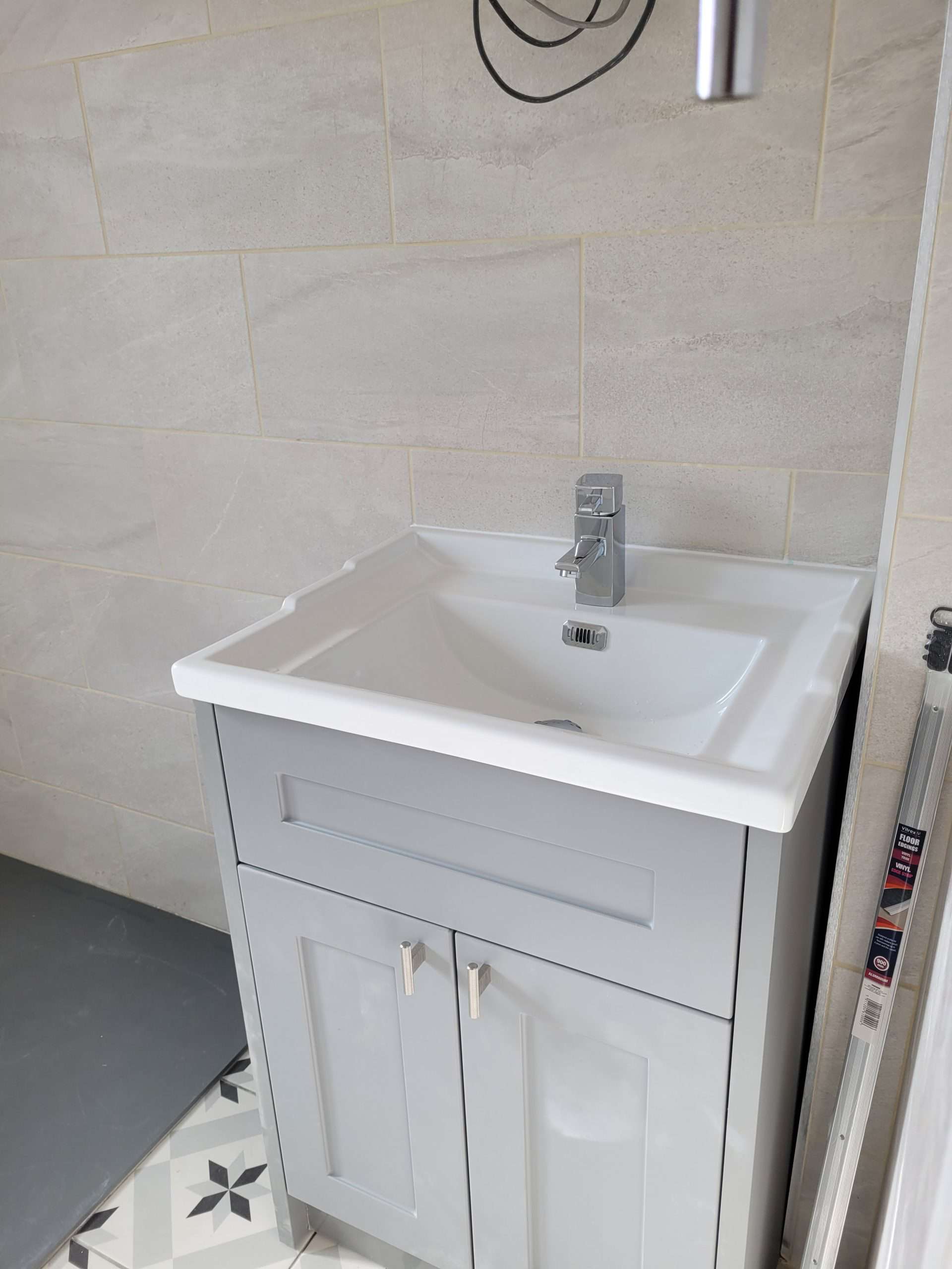 The tiling on this one took a long time to do. Each of those small tiles needed to be cut by hand and boy were they tricky, but still I got there in the end and the 35 year old couple are very happy with the result.